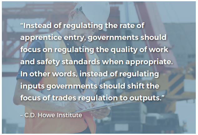 Do we really need government dictating to contractors the number of apprentices who can work side-by-side with ticketed tradespeople? Meanwhile, the training delivered to those who can find positions will be much more restrictive due to compulsory designations, which will erase cross- functional or more specialized learning and experience.
