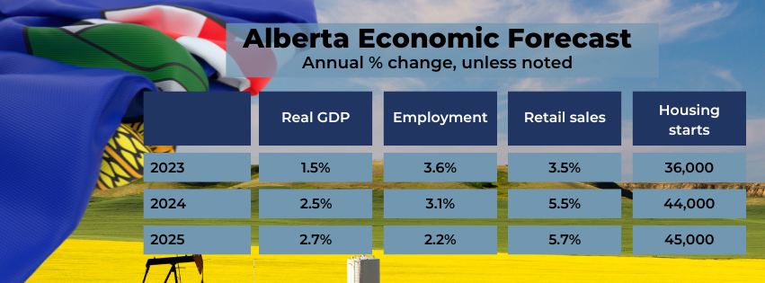 As always, oil and natural gas prices and trends in global and North American energy markets will significantly shape Alberta’s economic prospects going forward. For now, oil prices remain “constructive” for the province, according to ATB Economics, while natural gas markets have been weaker over the last 12 months. Looking ahead, natural gas production will benefit from the start-up of LNG production in B.C. ATB Economics projects the volume of Alberta’s oil and gas exports will rise by 5% this year and by 3% in 2025.