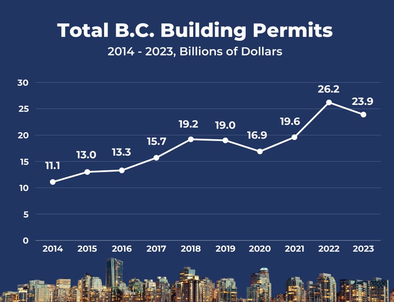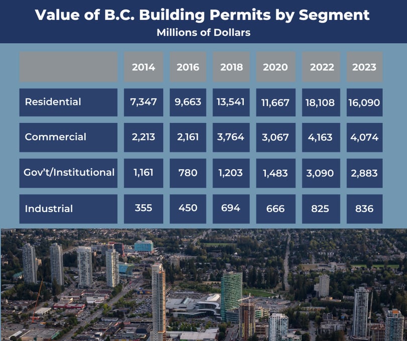 It is instructive to look back over a longer period to understand the patterns and shifts in building activity. This is particularly important in a jurisdiction like B.C., where construction looms large as an economic engine.