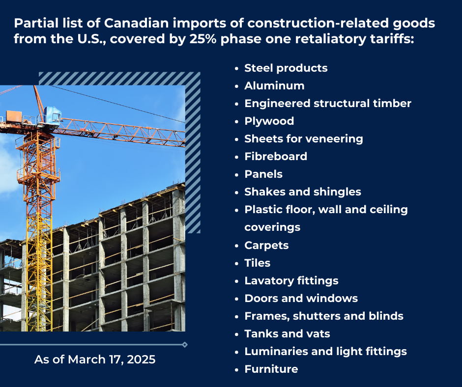 Faced with President Trump’s threat of 25% tariffs on most Canadian exports to the United States, the Canadian government pledged to follow suit with tariffs on goods imported from the U.S. This is in addition to the 25% tariffs Canada has already imposed on imports of steel and aluminum from the U.S., following the Trump administration’s decision to levy 25% tariffs on all American steel and aluminum imports on March 12. How will Canada’s proposed tariff retaliation impact the domestic construction industry – which, in B.C., accounts for around 8% of our GDP and directly employs some 250,000 British Columbians?