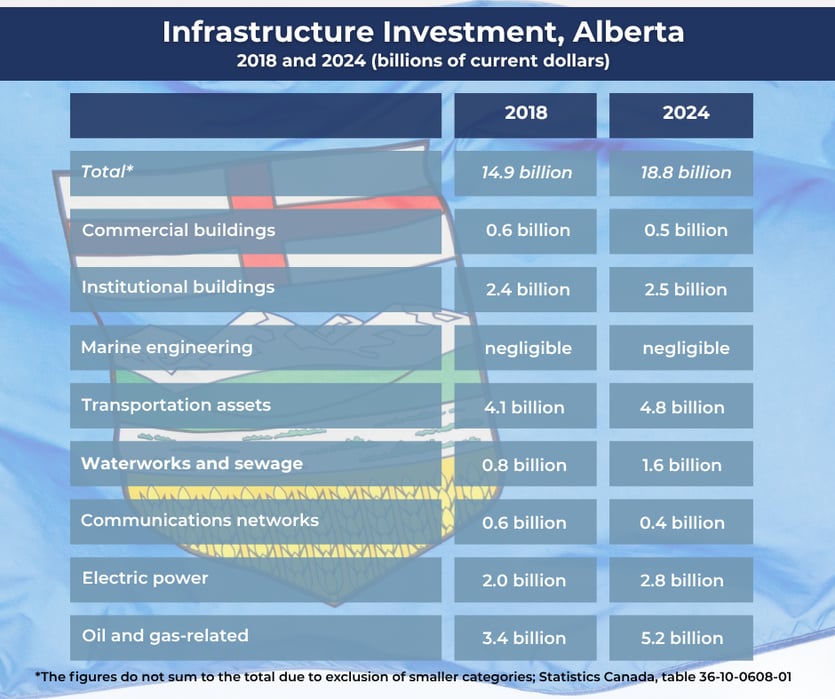 Finally, it should be noted that capital spending in the infrastructure categories tracked by Statistics Canada represents only a portion of total non-residential capital investment. The latter also includes investment in machinery, equipment, vehicles, advanced technologies, intellectual property products, and some other categories.