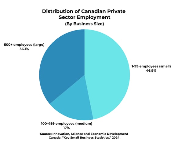 Figure 1 provides summary data on Canadian SMEs and their role in the wider economy. Figure 2 shows the distribution of private sector payroll jobs by business size.